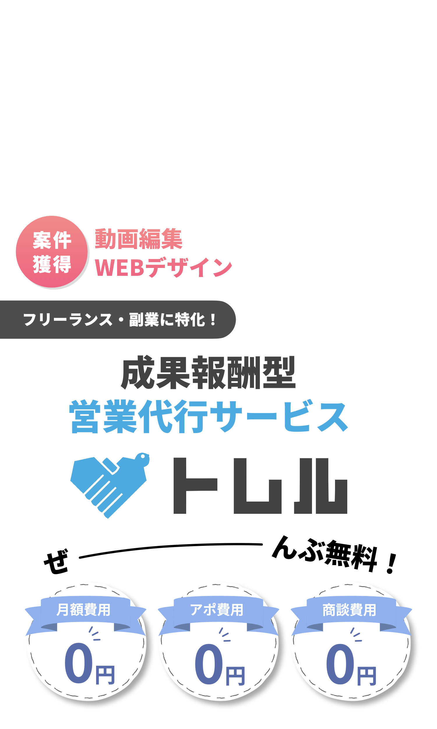 皆様がクリエイティブ制作に集中できるようにトレルでは案件獲得の成果報酬のみいただいております。